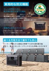 キャンプや災害時の備えに最適なセットで、太陽光による自家発電と、大容量バッテリーの確保が同時に実現できます。