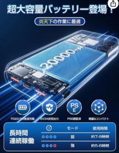 バッテリー20000mAh(長時間駆動対応)