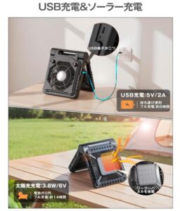 | SHINPURU 扇風機 | 8000mAh | × | 〇 | 約¥5,000 | 安価だがソーラー非対応 |