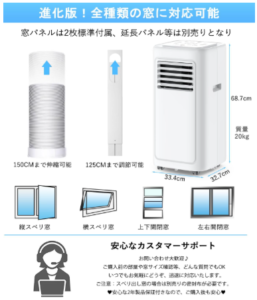 - 窓用パネル・排熱ダクトが標準付属(DIY不要)