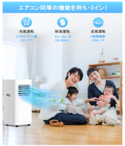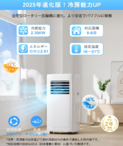 | JYWINA スポットクーラー | 2.35kW | 35L/日 | 軽量 | ノンドレン・静音・工事不要 | ◎ |