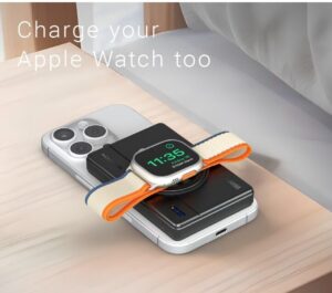 MATECH(マテック)® MagOn Watch 10000は、次世代規格「Qi2」に対応したワイヤレスモバイルバッテリーです。MagSafeマグネット搭載で、iPhone 12以降のモデルにピタッと吸着。さらにApple Watchの充電にも対応し、これ1台でiPhone・Apple Watch・他デバイスの充電をまかなえます。
