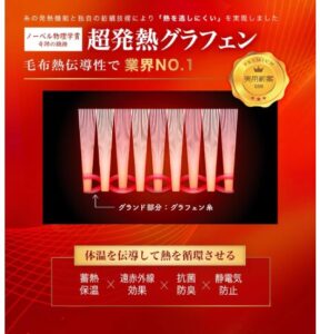 ノーベル賞を受賞した次世代素材「グラフェン」を繊維に練り込み、遠赤外線のぬくもりで体の芯からぽかぽか。