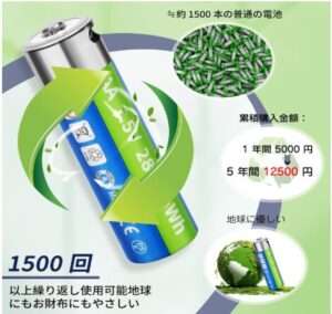 ✅ 約1500回繰り返し充電可能で経済的&エコ