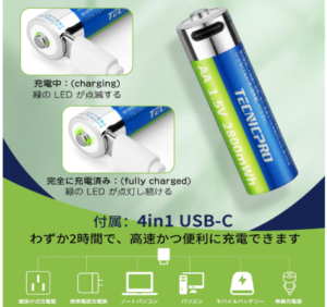 TECNICPRO【高性能&エコ】充電式 単3形 電池の特徴&メリット